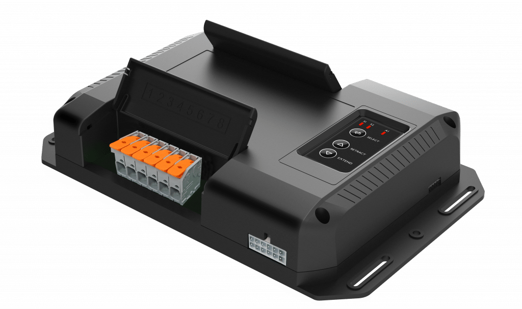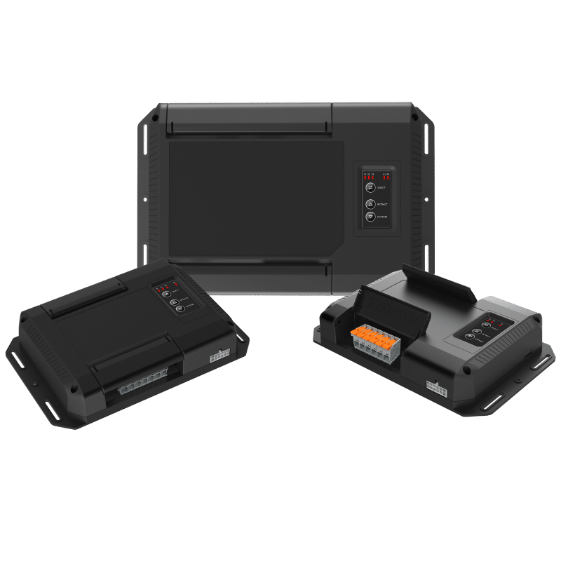 Each relay box has a different number of slides, awnings, devices, low current devices, and switches it can control. Some have reservoir monitoring and manual slide and awning control with buttons on the unit for emergency situations. Some models even have 2 CAN bus ports for RV-C devices.